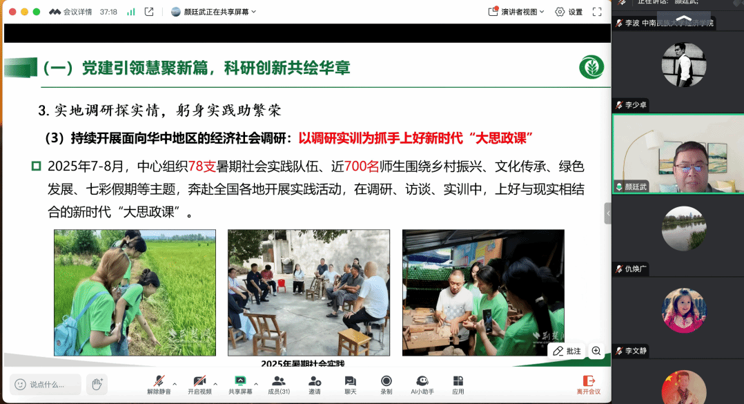 为全面总结湖北农村发展研究中心科研工作,深入交流“坚持四个面向,加快高水平科技自立自强”背景下的科学研究和人才培养过程中的经验做法,2月6日上午,beat365官网主导建设的湖北省高校人文社会科学重点研究基地——湖北农村发展研究中心,在线召开2025年度学术委员会会议。学者们共话中心发展,共议中心未来。