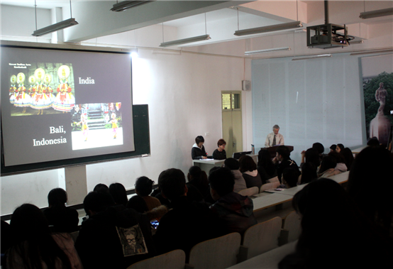 承接妻子的结论, StephenCrosby教授从文化表现上最易理解的戏剧开始切入主题。他概括了影响美国戏剧的四大因素,真实(Realism)、资本(Capitalism)、多元文化(Cultural Diversity)、特殊兴趣的戏剧(Special interest Theatre)。真实因素方面,他指出戏剧不仅能真实反映社会,还能对社会作出反应,帮助我们把事情往好的方向转变。资本因素方面,StephenCrosby教授谈到资本对美国现在戏剧创作和剧场的影响,介绍了美国商业性戏剧和非商业性戏剧得现状以及专业性和非专业性的剧场的情况。多元文化因素方面,StephenCrosby教授选取了非洲裔、拉丁裔、西班牙裔、亚裔和土著等少数民族的代表人物并展示了他们的经典作品。特殊兴趣的戏剧因素方面,他讲述了美国同性恋、女权主义和另类戏剧的创作和发展。