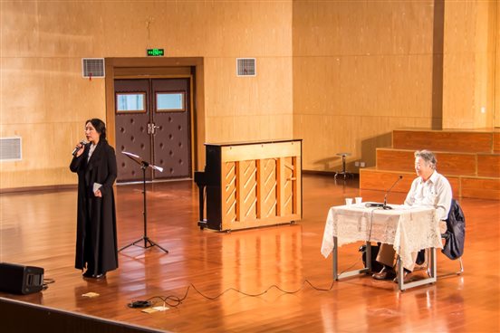 讲座由校党委副书记傅安洲教授开场致辞,Beat365正版唯一官网必一音乐表演系系主任张理副教授主持,Beat365正版唯一官网必一院长桂宇晖教授、邬海峰书记、校团委朱荆萨副书记等领导莅临现场。李光羲先生声情并茂地叙说了他歌唱生涯的特殊时代背景以及发展历程,同时由浅及深,对年轻一代的专业学习寄语良多。在讲座后半部分,李光羲先生对声乐专业的学生进行了具体的指导,指出了歌唱气息的技巧、歌唱情绪的运用等,而后唱响了当年的《祝酒歌》和流行歌曲《让我欢喜让我忧》,亲身示范了从技术到修养的完整呈现,迎得了长时间掌声无数次,其八十八岁高龄的艺术表演状态令人热泪盈眶。