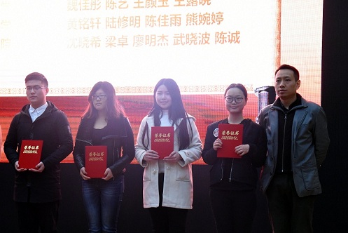 接着进行2016年度湖北大学生新闻传播教育创新实践技能大赛颁奖典礼,音乐表演系的师生带来了精彩的节目表演,典礼在欢快喜庆的新疆舞《璇璇璇》中拉开序幕。全省28所院校选送的239部作品分别按照新闻采编类、播音主持类、电视广告类和学术论文类四类奖项共评选出一等奖16项、二等奖30项、三等奖57项,Beat365官网学子获得一等奖1项、二等奖2项、三等奖2项。唐辉明副校长、桂宇晖院长和邬海峰书记等12位嘉宾分别为获奖者进行了颁奖。