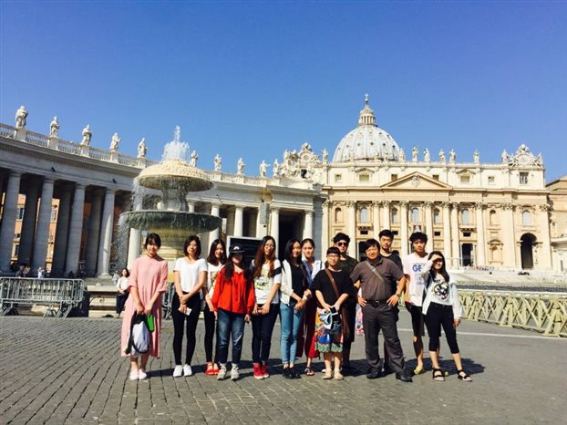 9月1日,这是写生实习小组在罗马进行参观活动的最后一天。大家来到了马老师夸赞不已的圣彼得大教堂。幸运的是在教堂前排队的人群还不算太多,没太久便进入到了这座人类艺术史上不得不提的宏伟建筑中。这座教堂比这次旅程中所见到的所有教堂都要精美宏大,它是包括米开朗基罗在内的许多文艺复兴时期的优秀建筑师共同创造的奇迹。往教堂内部走,右侧是著名的雕像《圣殇》,圣母抱着死去的耶稣,面容上流露出悲痛。这也是米开朗基罗唯一一座署名的雕像。殿堂中部是贝尔尼尼所建造的青铜华盖,据资料记载,华盖下方是祭坛和圣彼得之墓,只有教皇才可以在这座祭坛上,面对东升的旭日,为朝圣者举行弥撒。老师带着同学们走走停停,小声的为大家讲解这教堂中艺术品背后的历史。可惜的是教堂内仍有很大空间不对普通游客开放,所以同学们没能赏尽教堂全景。