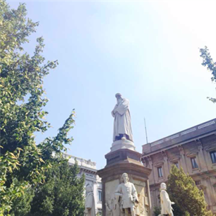 位于市政厅广场中央的达芬奇雕像。