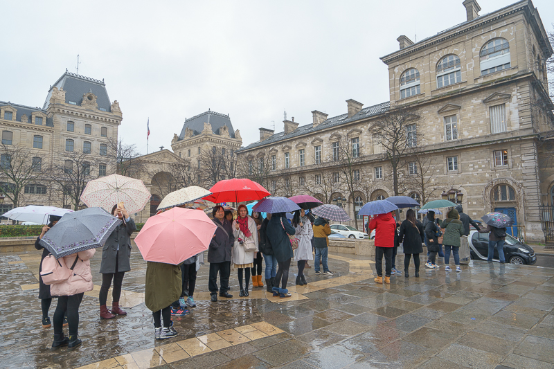 访学团沿塞纳河前行,一路经法兰西国家图书馆,过塞纳河码头,隔着雨幕看尽巴黎风光。在前往巴黎圣母院的途中,马林老师向访学团详细介绍了巴黎的历史及发展状况,他表示:“二战结束后,巴黎的规模不断扩大,并且一步一步的成为法国最重要的城市。且整个法兰西的经济、文化、政治,以及科技等都集中于此,更巩固了巴黎在法国的地位。但为了保护巴黎的环境,巴黎市区只接受轻工业,而不接受大型重工业,这不仅让巴黎城区得以正常发展,亦使得巴黎郊区的面积扩张得越来越大,这也成就了现在的‘大巴黎’与‘小巴黎’。”