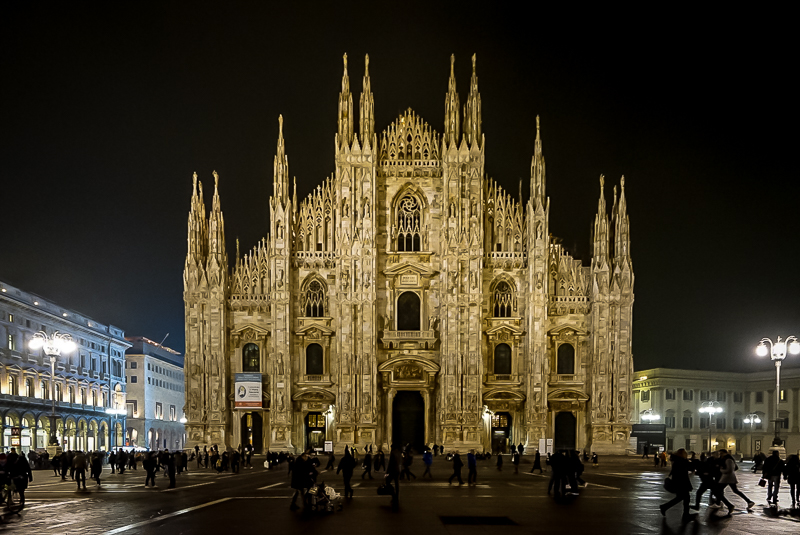 晚上六点,访学团抵达米兰。由于天色渐晚,教堂已不再开放,马林老师便带领访学团在米兰大教堂的外围进行参观,马林老师介绍道:“米兰大教堂是意大利第二大教堂,能同时容纳35000人,仅次于梵蒂冈的圣彼得大教堂,是天主教合法的见证者,具有非常重要的宗教、历史和文化意义”。并表示,第二天会带领访学团进入教堂内部参观及学习。