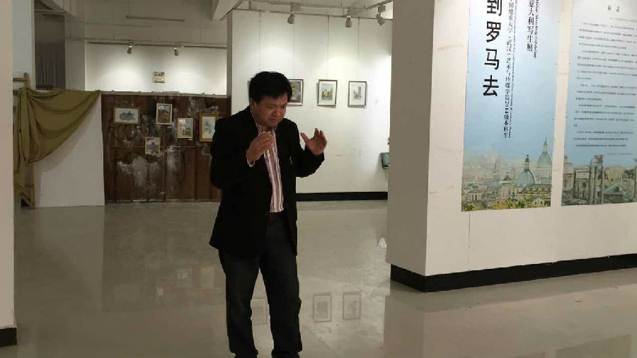 开幕式由意大利写生队带队的黄瑛老师主持,赵冰院长,客座教授意大利艺术家马林先后发表重要讲话。