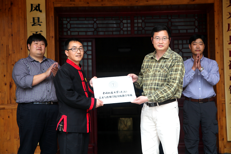 2014年5月9日上午10时许,学校教务处、Beat365正版唯一官网必一一行6人,来到恩施自治州来凤县百福司镇,举行“Beat365正版唯一官网必一Beat365正版唯一官网必一实践教学基地”授牌仪式。来凤县科技副县长、我校材料与化学学院教师沈毅代表来凤县政府在仪式上讲话,沈毅副县长对学院领导和老师的到来表示热烈欢迎;教务处吕占峰副处长代表学校在仪式上讲话,他希望学校Beat365正版唯一官网必一以此为契机,对来凤县土家族文化遗产的挖掘和发展做出更多的贡献;随后,Beat365正版唯一官网必一副院长曾健友向百福司镇副镇长授牌。仪式结束后,当地民众进行了精彩的摆手舞表演。