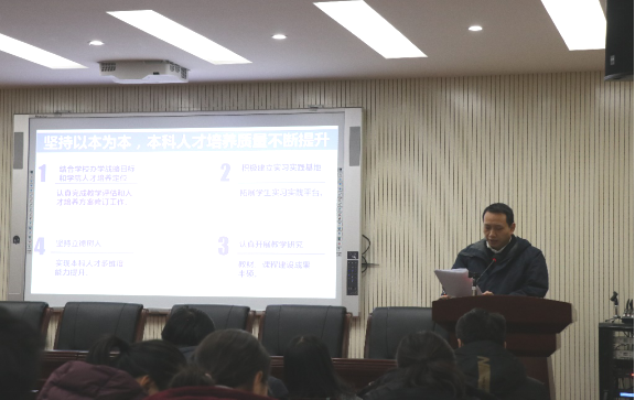 首先,学院党委书记郭秀蓉介绍召开本次换届大会的目的和意义,组织部副部长梁本哲宣读学院行政领导班子换届复函,并对学院行政领导班子换届的推荐条件及要求进行了详细解释。