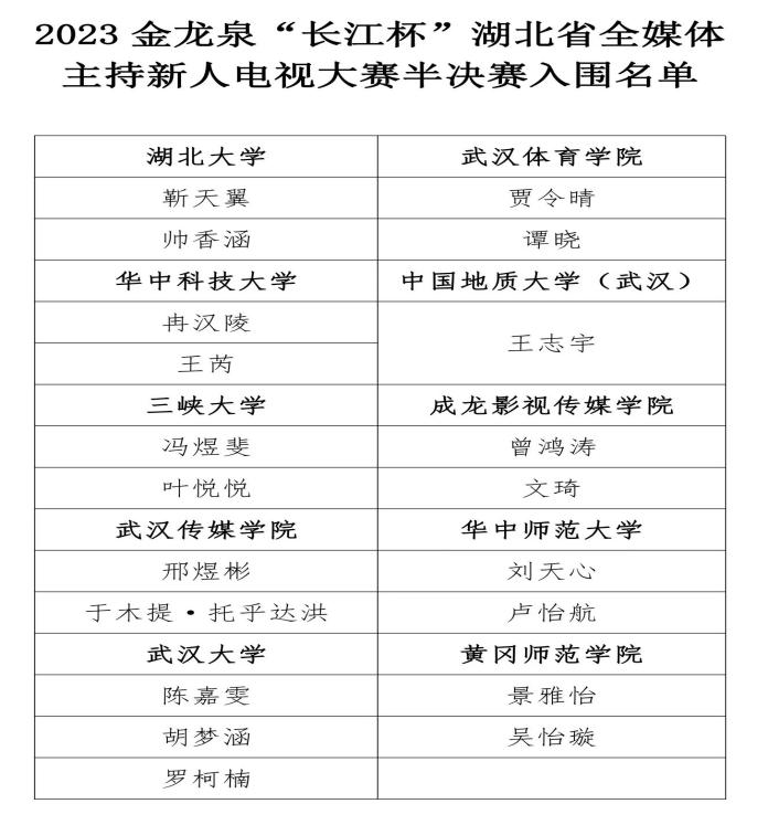 11月8日,湖北省文联组织专家评审。参赛选手通过短视频进行了自我介绍和模拟主持,专家评审组通过审看节目视频、展开评审评议,就参评选手的语音标准、仪态要求、艺术表现力和感染力等多个方面进行了细致的讨论和严格的评分,最终评选出20名入围半决赛的电视主持新人,其中王志宇将代表Beat365正版唯一官网必一参加比赛半决赛。