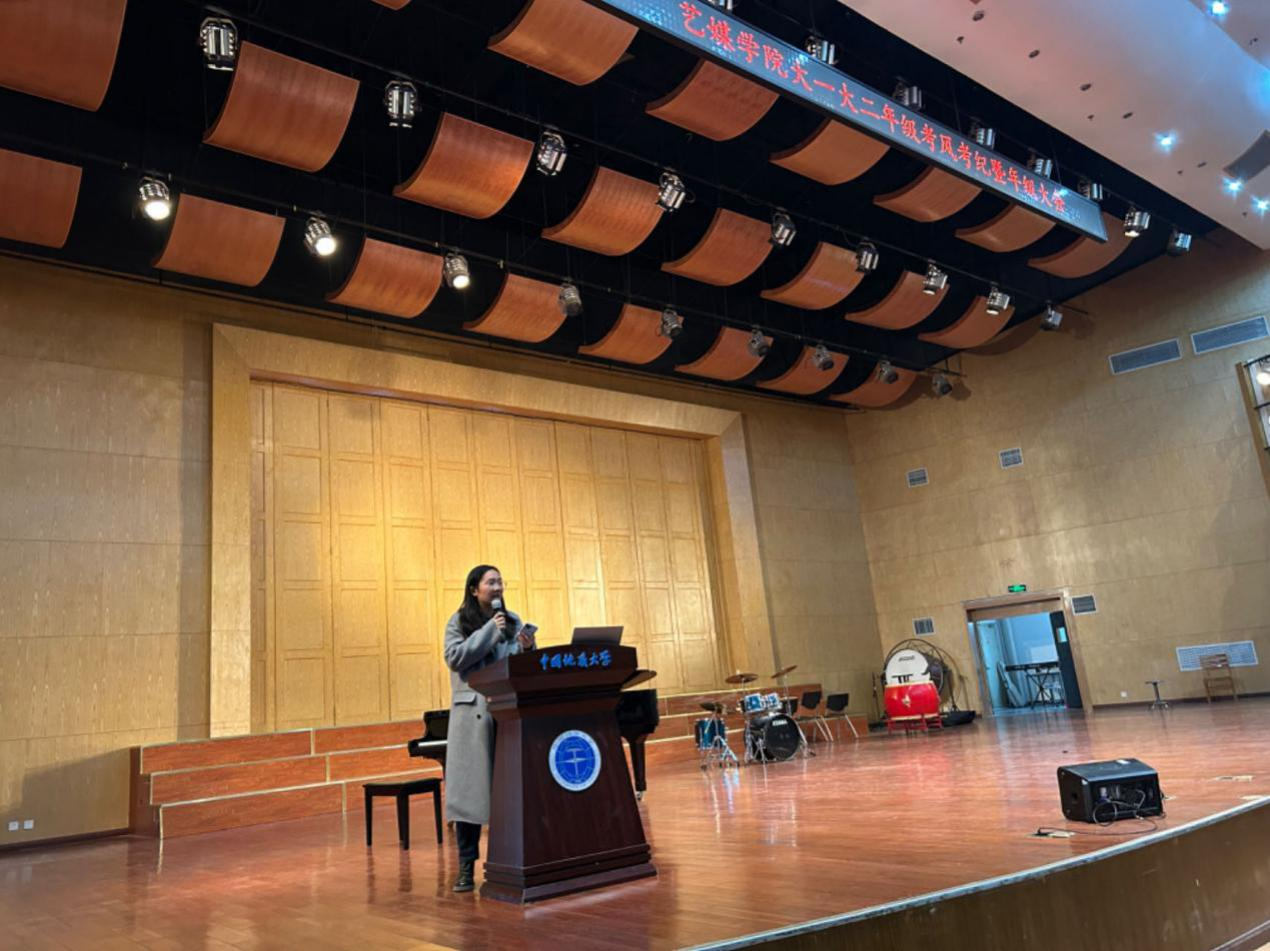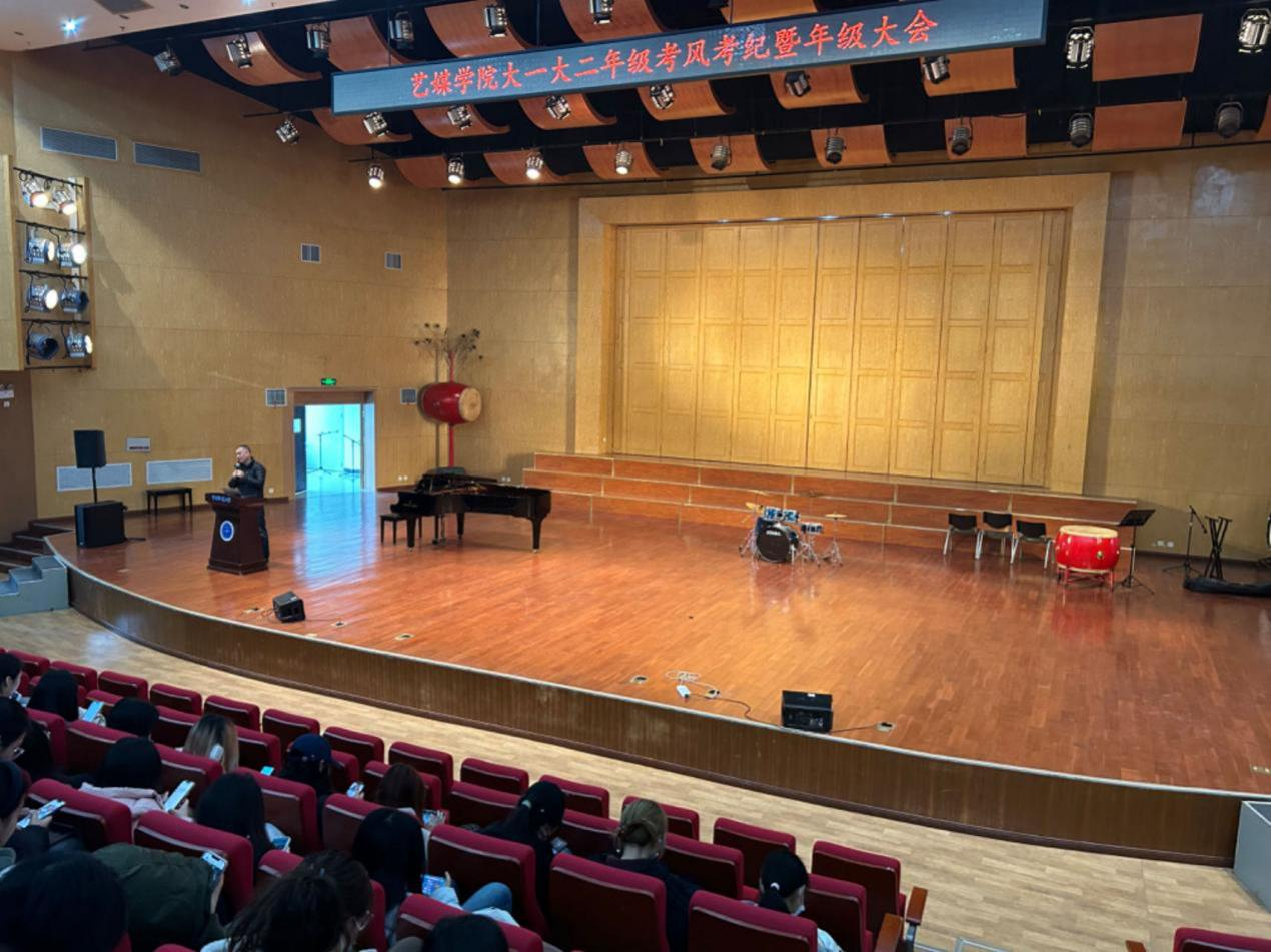 (通讯员:王琼逸)2023年12月5日中午12:30,Beat365正版唯一官网必一大一大二年级考风考纪暨年级大会在北区音乐厅顺利召开,学院副院长杨喆,院党委副书记边建华,学工组辅导员陈习良、曾戈晖,兼职辅导员聂瑞祺、吕笑言、王琼逸、包颜铭以及大一大二年级全体本科生参加会议,本次大会由学院党委副书记边建华主持。