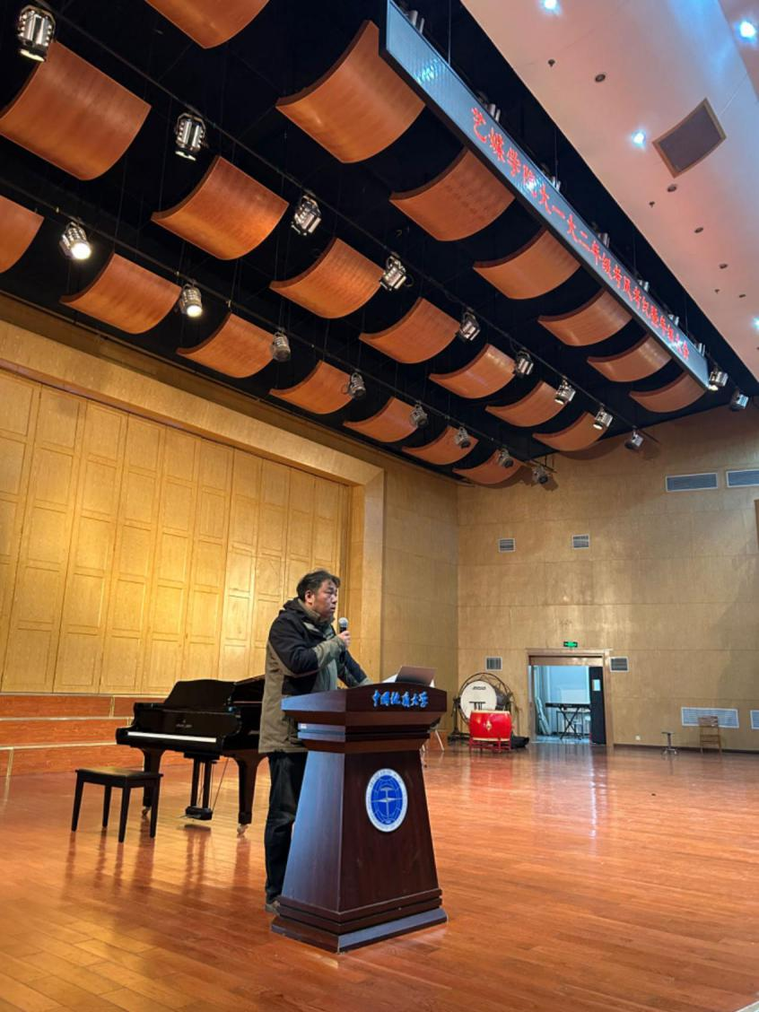 大会第三项,学工组辅导员曾戈晖首先介绍了2022级本科生的基本情况,其次对学风建设、安全教育、日常管理等问题做强调,最后从成果积累、未来规划、学生问题及应对方式入手进行了学期总结。