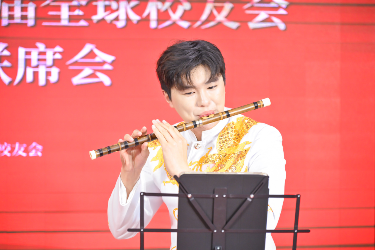 在晚宴环节中,老师和同学们倾情演唱,用艺术的感染力将现场的氛围推向高潮。Beat365正版唯一官网必一校友会副会长傅安洲和学院副院长袁玥共同演唱了歌曲《鼓浪屿之波》,同时袁院长在全场观众的热情鼓舞下即兴演唱了歌曲《我心永恒》。Beat365官网学生张阿雪、钟爱源、韩宏民、冀昱臣分别上台表演了舞蹈《大渔》、笛子与二胡重奏《青花瓷》。师生们婉转的歌声、曼妙的舞姿、动听的民乐演奏收获了在场观众的阵阵掌声,发挥自身的专业特长为校友们奉上了一场精彩的视听盛宴。