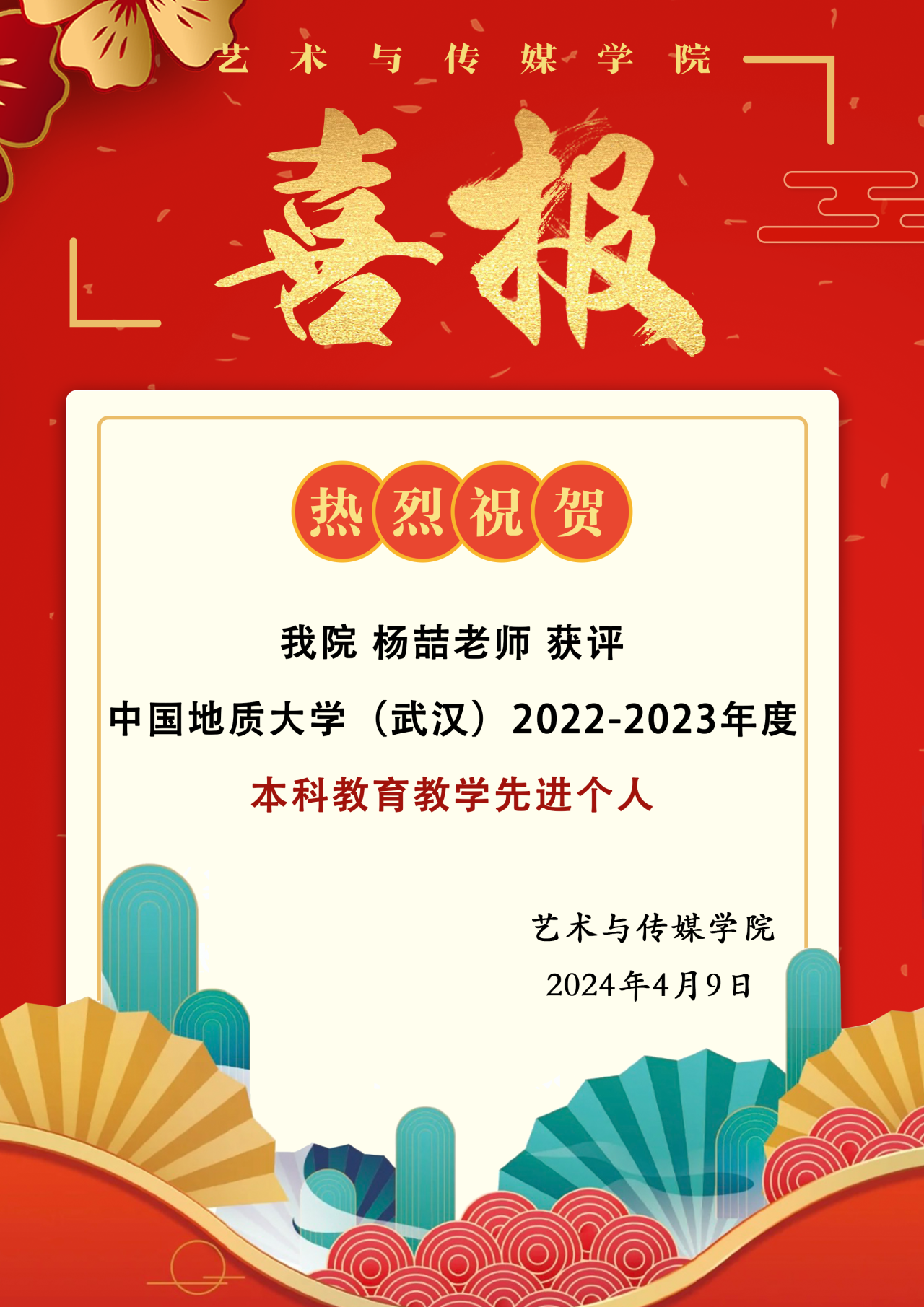 喜报|热烈祝贺Beat365官网杨喆老师获评学校2022-2023年度本科教育教学先进个人!
