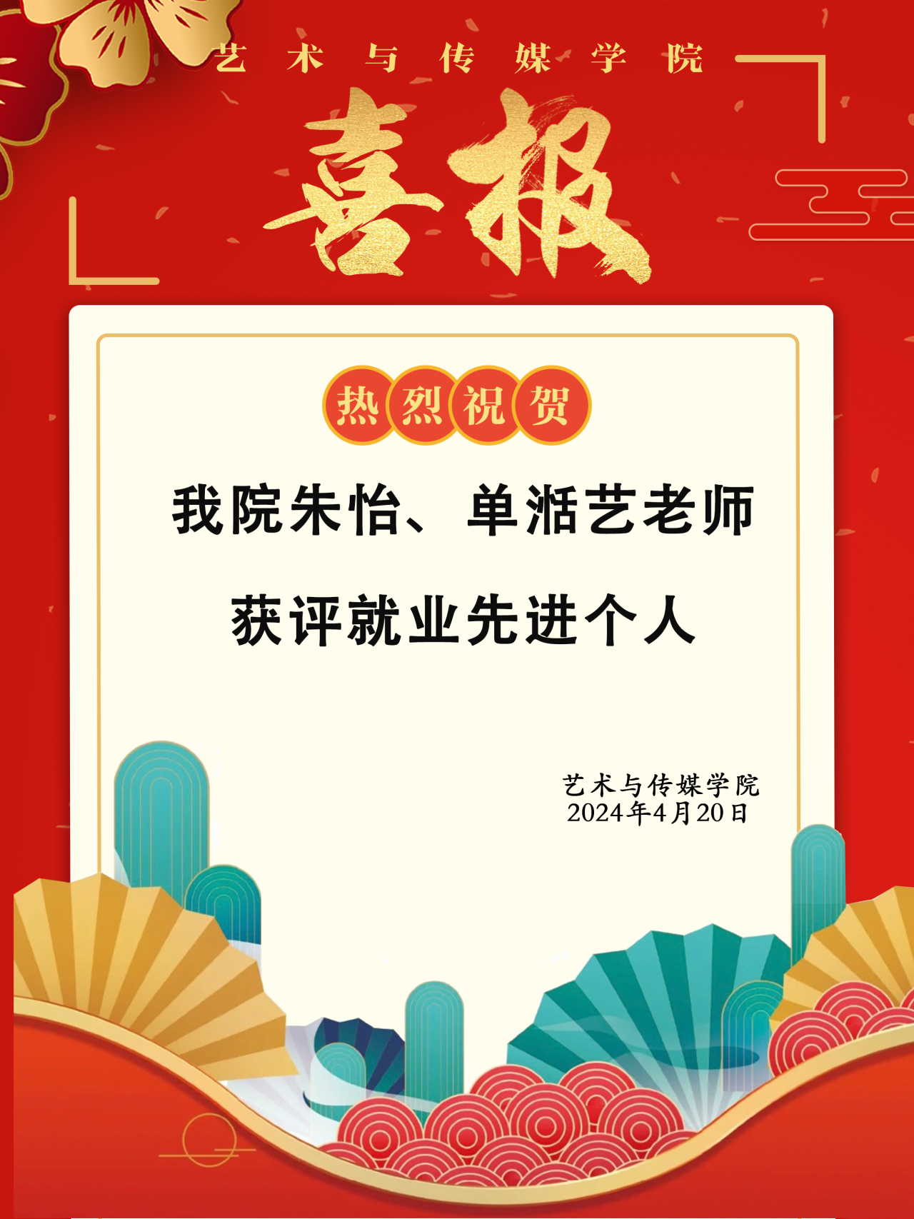 喜报 | 热烈祝贺Beat365官网朱怡、单湉艺老师获评就业先进个人!