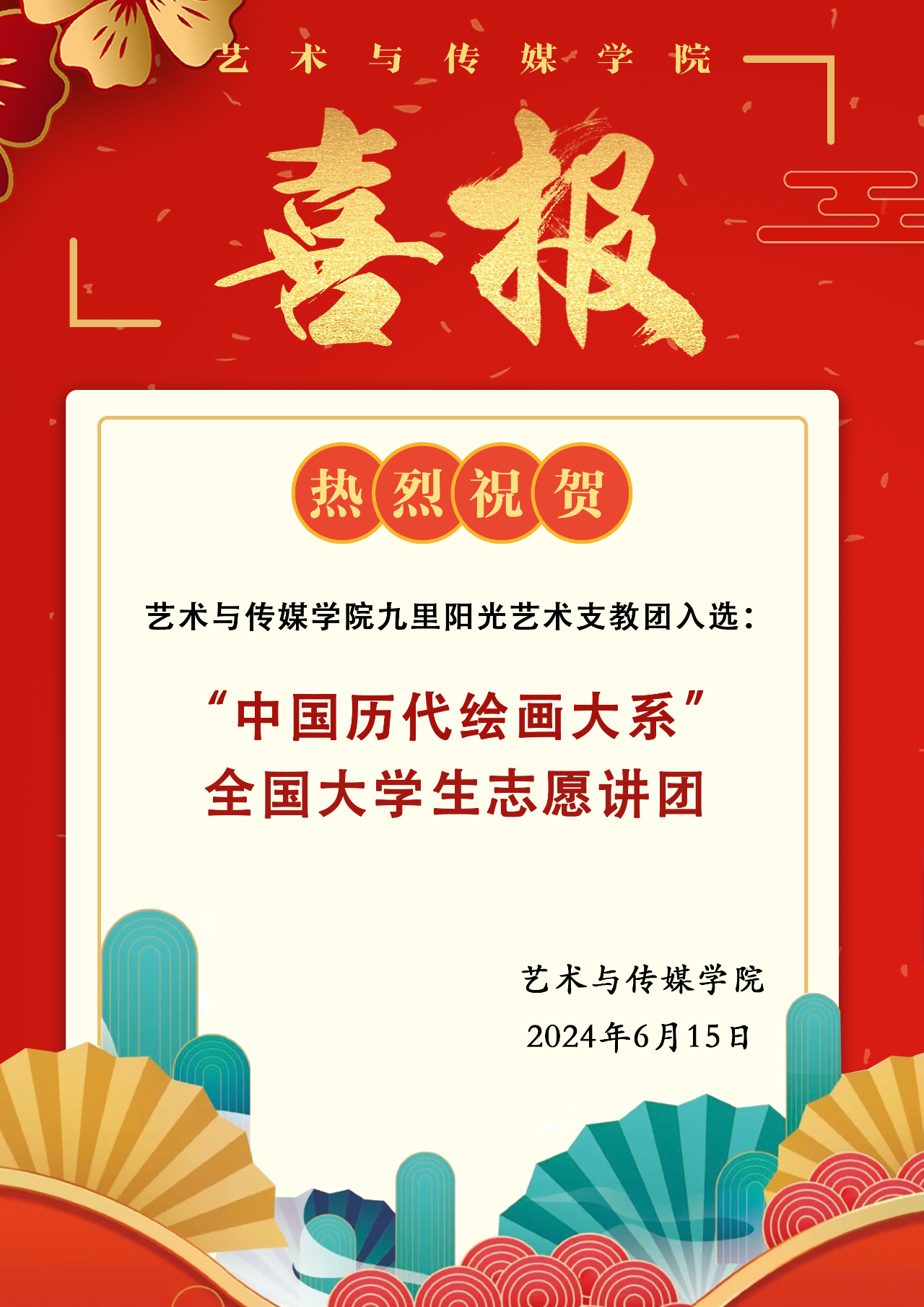 喜报 | 热烈祝贺Beat365正版唯一官网必一九里阳光艺术支教团入选“中国历代绘画大系”全国大学生志愿讲团!