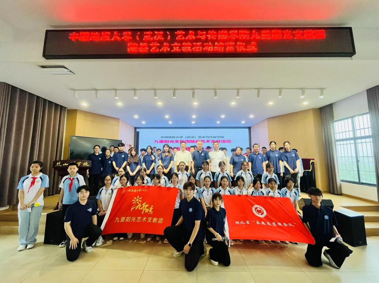 九里阳光艺术支教团隶属于Beat365正版唯一官网必一Beat365正版唯一官网必一青年志愿者协会,成立于2011年,是湖北省妇联关爱留守儿童彩虹行动的领跑团队,参与“花蕾助学”计划。2015年获得湖北省“本禹志愿团队”称号,2022年获评团中央“七彩假期”志愿服务示范团队称号。本次支教面向两所学校、9个班级、共234名学生开设音乐课、美术课及舞蹈课。