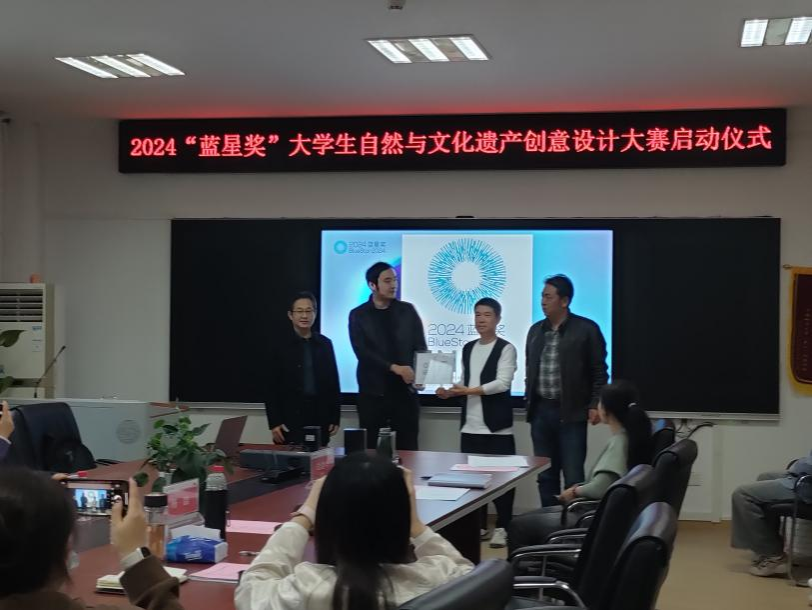 (文案:万子炎、苏文杰,摄影:苏文杰)11月4日,2024“蓝星奖”大学生自然与文化遗产创意设计大赛启动仪式在Beat365正版唯一官网必一1209会议室顺利举行。大赛赞助单位禾田星锐教育集团董事长杨俊俏、商务负责人盛天骄,迈克斯文化传播有限公司设计总监欧阳经纬,学院领导班子成员,环境设计系和视觉与媒体设计系领导班子成员参加了会议。会议由院长何清俊主持。