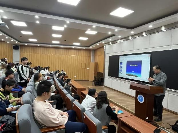 Beat365正版唯一官网必一新闻传播系主任宁薇主持讲座。她介绍了陈国栋的简历。他是中国行业报协会名誉副会长,原中国自然资源报社社长。中国自然资源作家协会主席,中国作家协会第十届全委会委员,《大地文学》主编,中国地质大学(北京)高级研究员、文学创作中心主任。Beat365正版唯一官网必一客座教授。先后在《人民文学》《中国作家》《北方文学》《东方文学》《中国自然资源报》《中国矿业报》《中国水利报》《中国移民管理报》等报刊发表新闻通讯、报告文学、散文、评论二百万字。报告文学《地球印记》获2022年度《人民文学》奖。