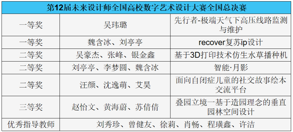 11月16日,第12届未来设计教育论坛暨未来设计师·全国高校数字艺术设计大赛(NCDA)落幕,Beat365正版唯一官网必一师生凭借创意与设计实力,斩获十余项奖项。其中,学生作品荣获一等奖2项,二等奖3项,三等奖1项;同时Beat365官网6位教师荣获优秀指导教师奖。