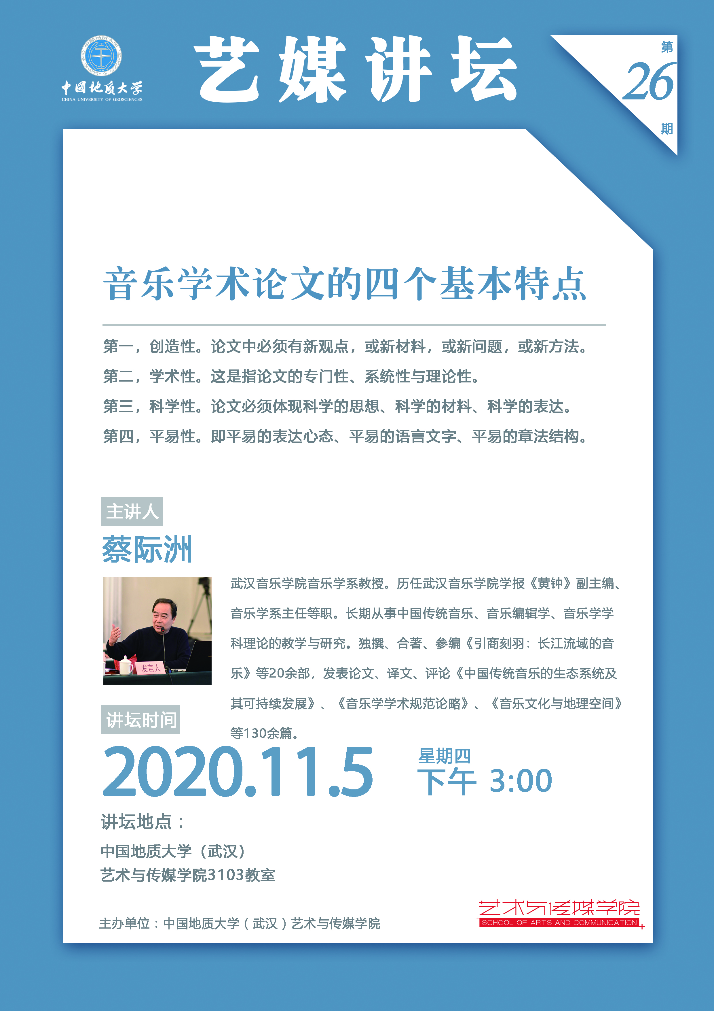 [2020年11月5日]艺媒讲坛(26期):武汉音乐学院蔡际洲教授讲座