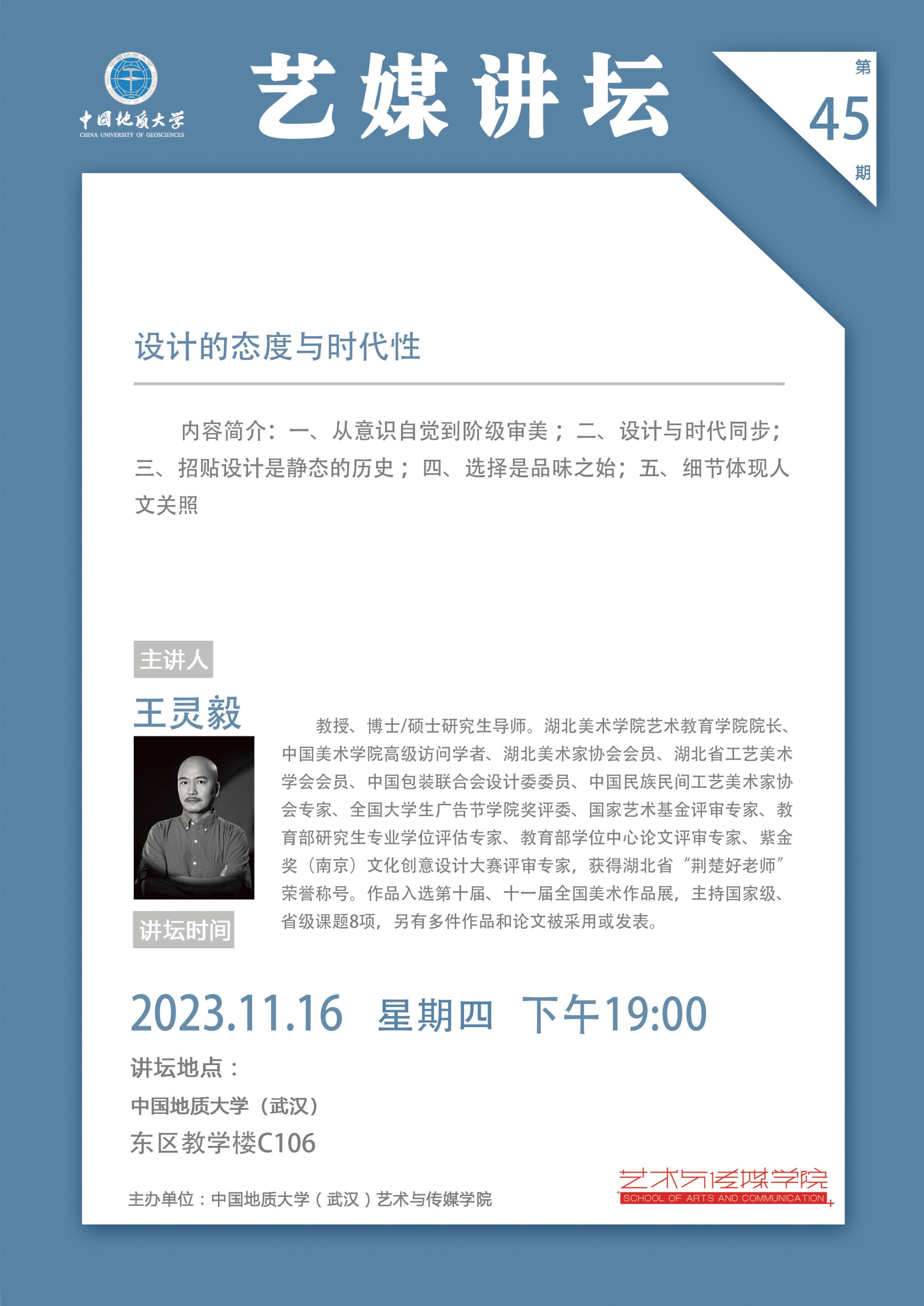 【2023年11月16日】湖北美术学院艺术教育学院院长王灵毅教授讲座