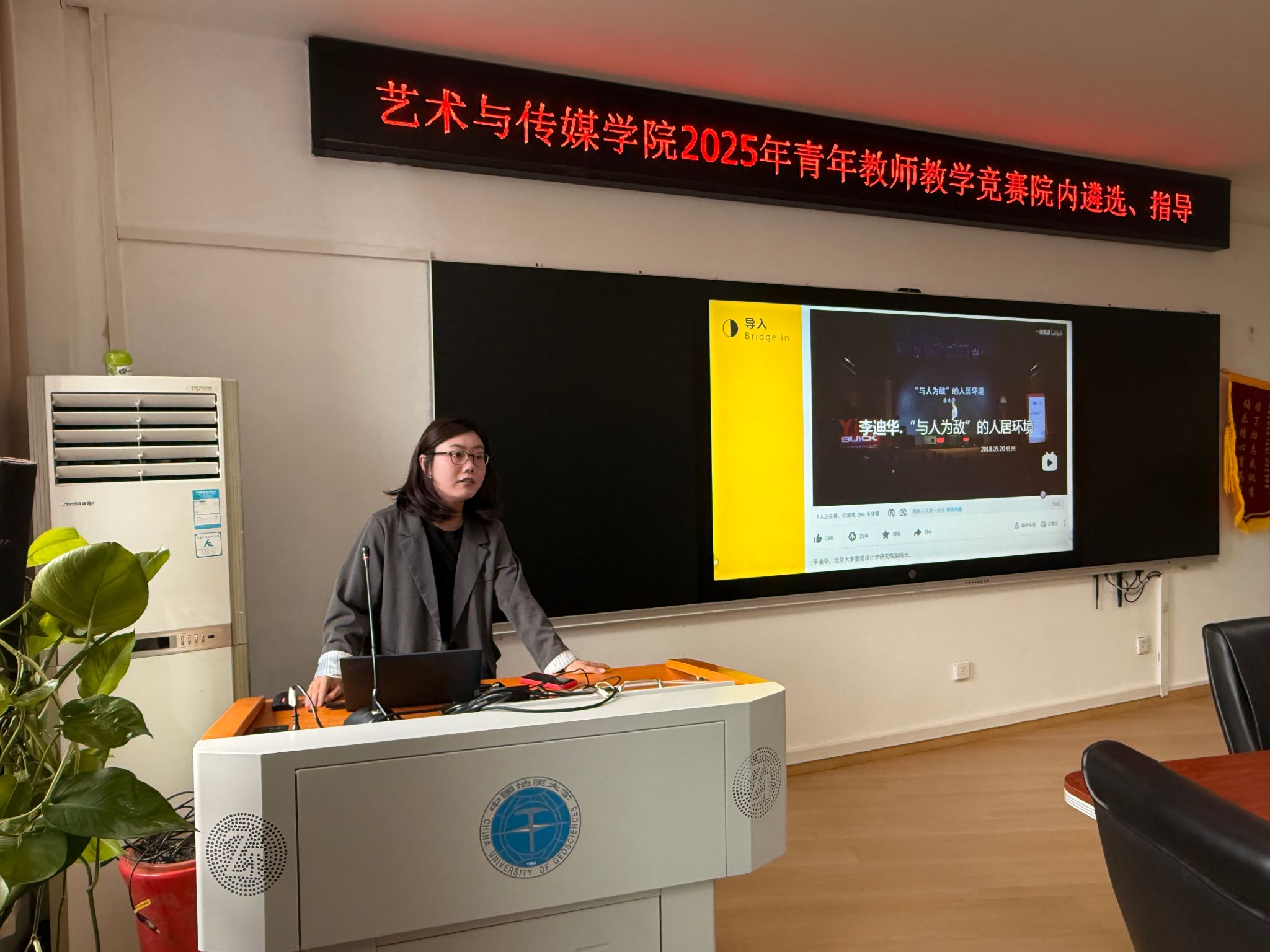 环境设计系教师朱怡参加了教学竞赛,她参赛的课程为《空间设计方法》,整个授课以课程导入-概念讲解-案例分析-课程总结的顺序进行,围绕经典案例分析,教学生学会用身体介入空间,采用5W法进行实地调研与设计,学会如何将概念转译为图面的能力。