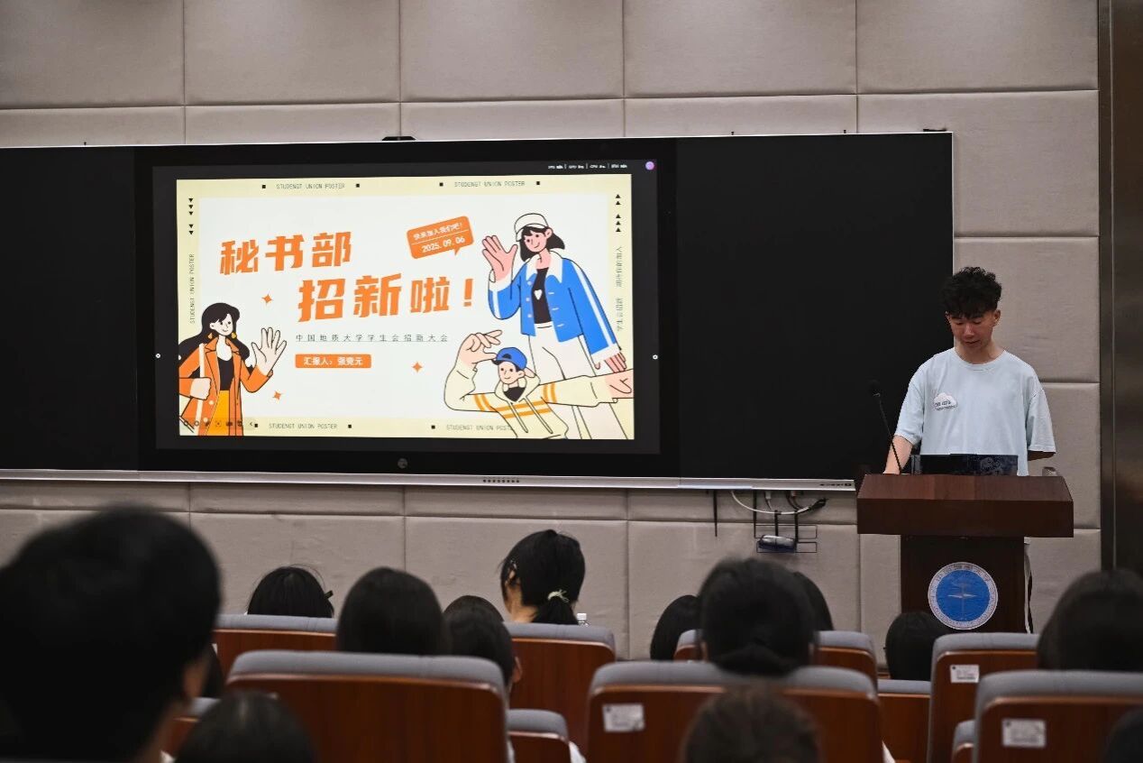紧接着由学生会和分团委下属的各部门进行宣讲,部长们分别从人员介绍、部门概况和优势、工作属性及内容等方面进行讲解。