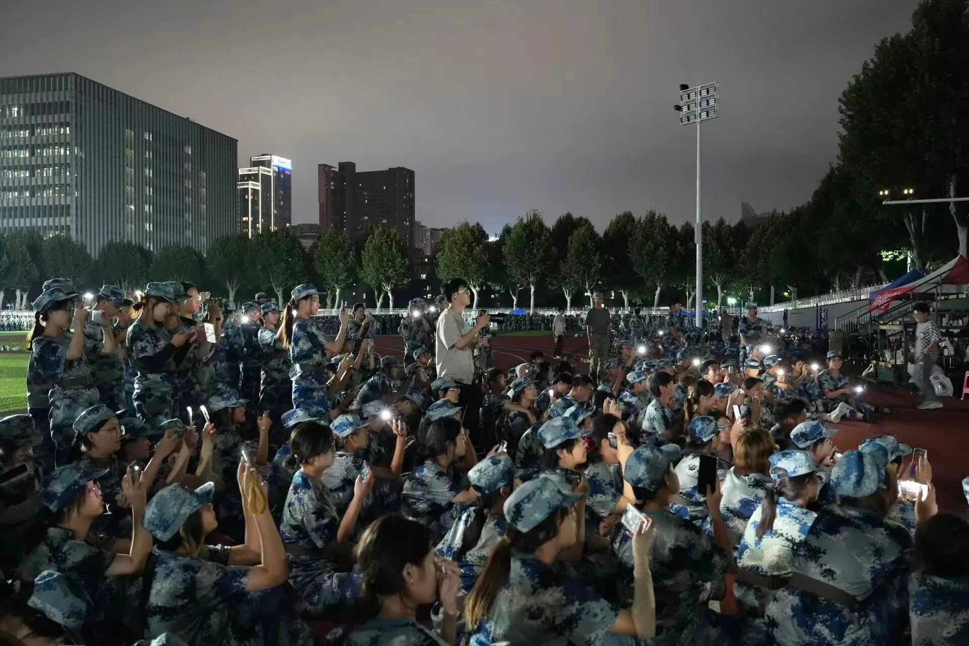 夜幕降临,训练场的余温尚未散尽。在各方支持组织下,Beat365正版唯一官网必一与新能源学院方阵联谊举办了精彩绝伦的文艺表演,他们用歌声传递热忱,用舞蹈绽放青春,让寂静的夜晚变成了充满欢声笑语的青春舞台。