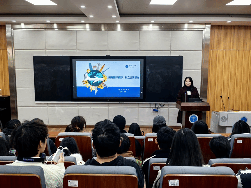 在国际交流项目讲解中,李老师为同学们系统梳理了短期访学、交换项目与学位项目三大核心类别。针对项目申请流程,她给出清晰指引:同学们可通过 “地大海外留学信息平台” 公众号、学院辅导员转发、国际合作处官网等渠道获取项目信息,再通过学校官网或企业微信完成线上报名;同时特别提醒,不同项目对语言成绩和 GPA 有明确要求,建议同学们提前规划英语学习、保持良好学业成绩。资助政策层面,李老师重点介绍了大学生可申请的各类奖学金与专项基金,涵盖 CSC 中国政府奖学金、外国政府奖学金等政府类奖学金,并详细说明了报销流程、时限及材料要求,为同学们减轻经济负担提供实用参考。学业规划板块,李老师结合不同年级特点给出了针对性建议。最后,论坛互动环节,同学们围绕语言成绩要求、学分转换细则、海外生活适应等问题积极提问,李老师逐一耐心解答,现场交流氛围浓厚。