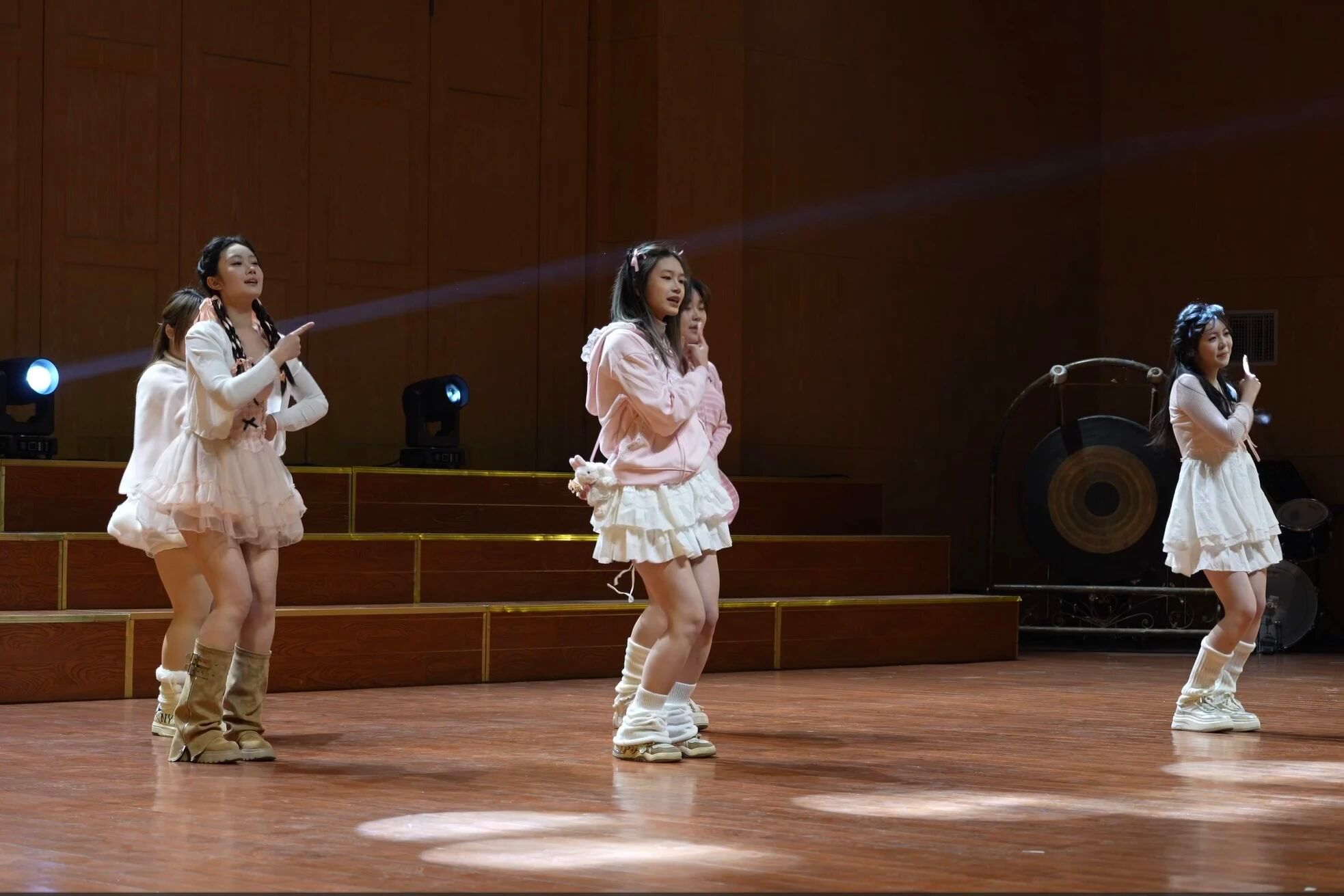 活力四射的开场舞《Do the Dance》瞬间点燃全场,程天、刘语晗、罗心悦、袁悠然、张诗晗五位同学用充满张力的舞姿拉开了晚会的序幕。随后的歌曲对唱《可能否+游移的月亮》则像一阵温柔的风,孙浩天与程翰林的歌声交织,诉说着青春里的细腻心事。古韵悠悠的《壁上观》在孙沛儿的歌声与秦伊贝的钢琴伴奏中缓缓流淌,让人仿佛置身月色如水的静谧夜晚。