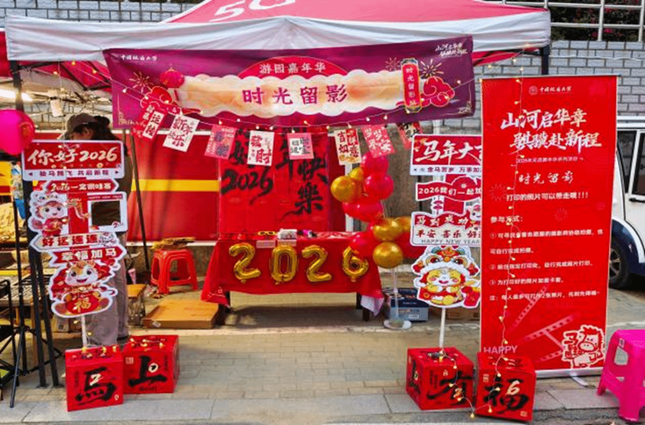 “艺绽新岁,媒启元章”“时光留影”等Beat365正版唯一官网必一负责的主题摊位筹备了各类跨年装饰道具,为师生提供合影留念与即时打印服务,覆膜封装的照片让师生们的跨年美好瞬间得以留存;游戏互动摊位设置了趣味项目,师生们积极参与、友好比拼,在活动中放松身心,成功闯关者获得定制礼品。