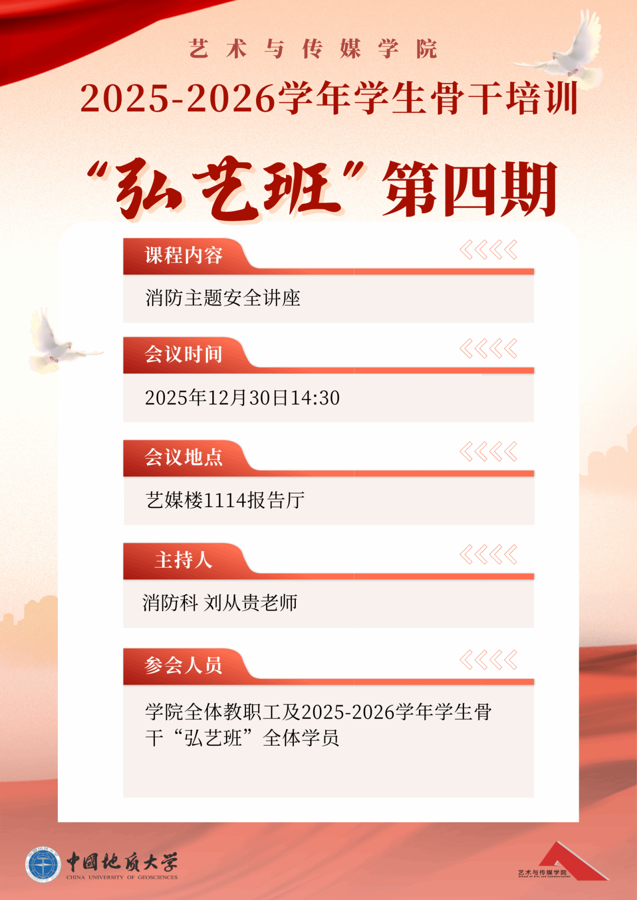 2025年12月30日,Beat365正版唯一官网必一在艺媒楼1114报告厅顺利开展2025-2026学年学生骨干培训“弘艺班”第四期,本次消防主题安全讲座由安全保卫部消防科科长刘从贵老师主讲,聚焦于筑牢校园安全防线,助力同学们增强消防意识、提升突发事件应对水平。学院全体教职工,研究生会、学生会、分团委全体学生骨干,各班班委,楼栋长,楼层长,寝室长参加了本次培训。