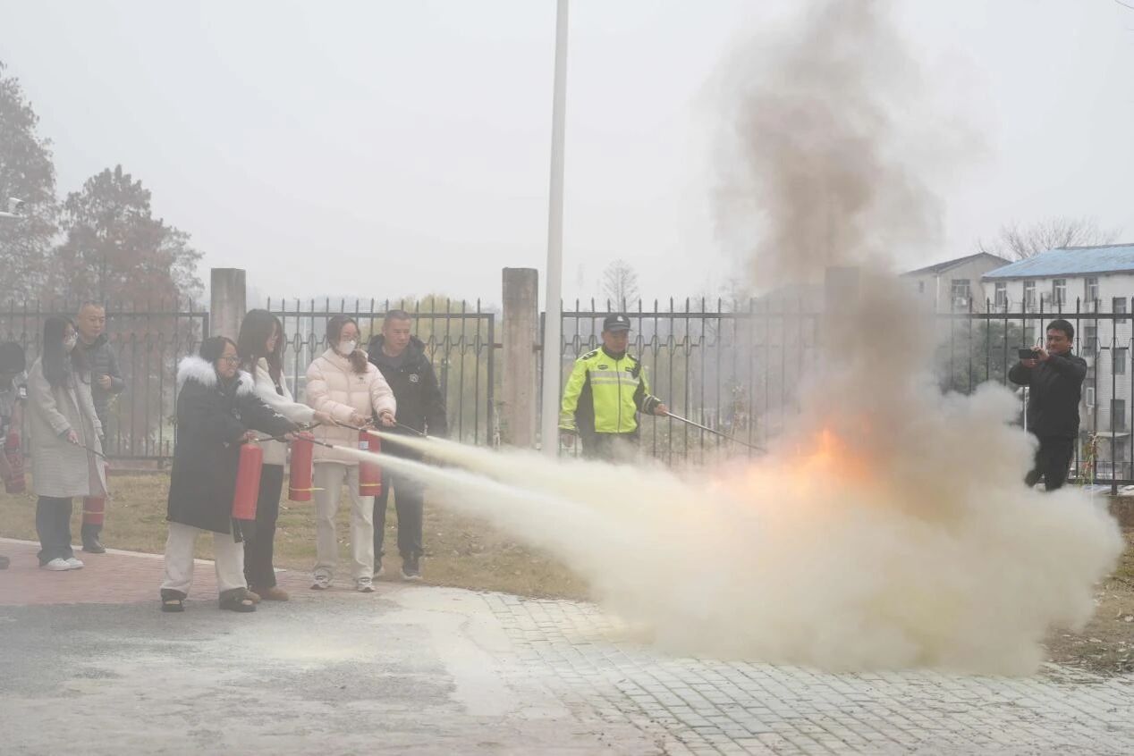 随后,刘老师带领师生有序前往室外,现场演示灭火器的规范使用方法。从灭火器的正确提握姿势、喷射安全距离的精准把控,到核心操作步骤,刘老师均进行了细致入微的讲解与标准示范,确保每位同学都能清晰领会并掌握实操要领。演示结束后,刘老师还组织同学们依次进行灭火器实操演练,让大家在亲身体验中巩固所学技能。