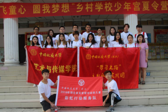 九里阳光连续七年前往湖北秭归茅坪镇九里小学支教,今年通过与省妇联,宜昌市妇联取得联系,经其推荐,承接妇联“彩虹行动”、“关爱留守儿童计划”,更改支教地点前往九畹溪镇仙女村进行艺术支教,发挥专业特色,关爱留守儿童。开展以“艺心筑梦,同沐阳光”为主题的为期9天的暑期文艺社会实践活动。