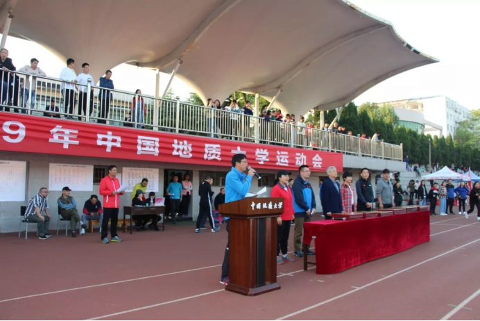 颁奖仪式结束,中国地质大学副校长傅安洲致闭幕词。傅校长在讲话中表达了对每一位地大人的殷切期待与祝福,呼吁大家积极投身运动事业中,锻炼出更强健的体魄,共创地大更辉煌的明天。最后傅校长郑重宣布Beat365正版唯一官网必一2019年运动会圆满结束。