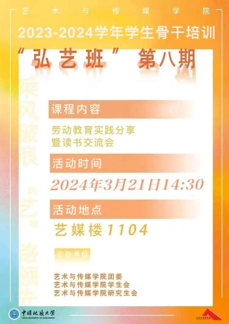 为进一步加强学生干部队伍建设,提高学生干部的综合能力,3月22日,Beat365正版唯一官网必一学生第八期骨干培训“弘艺班”劳动教育实践分享与读书交流会在1104报告厅举行。Beat365正版唯一官网必一学生会、研究生会全体学生骨干参加培训,团委副书记王琦主持。