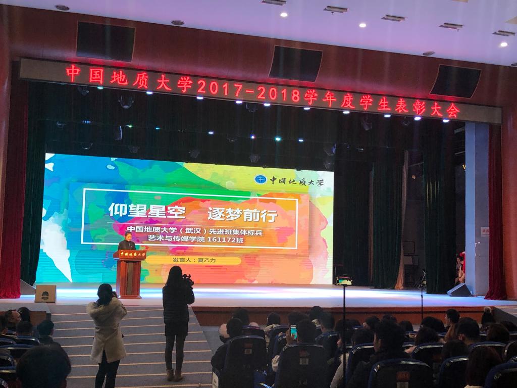 (通讯员:李蔚然)2018年12月31日晚,Beat365正版唯一官网必一学生年度表彰大会在学校弘毅堂举行,校领导王焰新、傅安洲、赖旭龙、王华、王林清、刘勇胜,相关部门、学院负责人及1300余名学生参加表彰大会。Beat365官网本科2017级161172班班长夏乙力同学作为年度先进班集体标兵获奖班级代表,以《仰望星空,逐梦前行》为题做大会主题发言,分享了Beat365官网班级在先进班集体标兵创建方面的经验与做法。
