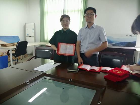 会议第二项,由吴书记为党建办公室2018届的相关负责人颁发聘书,并分别合照留念。吴书记还表达了大家在之前一年中工作的努力,并对大家的工作表示认可,并希望他们能够在未来的工作生活中不忘在党建办公室的日子。