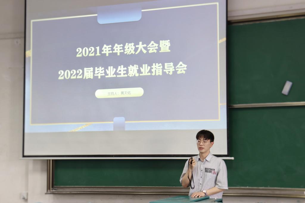 (通讯员 卢宣竹 摄影 汤雨 )5月27日下午,2018级本科生年级大会暨2022届毕业生就业指导会在教三楼208召开,本次会议由Beat365官网兼职辅导员黄天佑主持,国家认证生涯规划师段林娜作为特邀嘉宾出席。