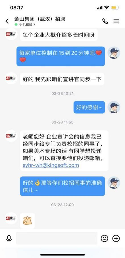 此外,Beat365官网积极与用人单位保持热切联系,纳入就业联络库,以期为今后常规化招聘工作奠定基础。学院辅导员会将用人单位提供的求职培训、课程教学、实习机会及时转发到学生群,并根据学生的求职状态进行点对点的推送。