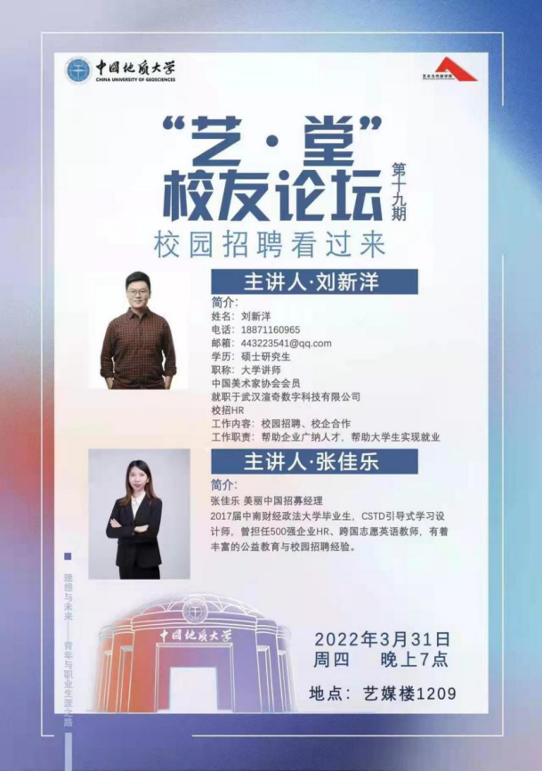 大学是教书育人的象牙塔,但求职就业不能闭门造车,学生需要深入行业一线了解工作氛围,需要获取行业资讯知晓工作重点。对此,Beat365官网积极与二十多家用人单位开展联络,深耕艺·堂校友论坛平台,邀请企业HR、资深职员进行就业宣讲。本学期已成功举办4期,系列论坛主题包含考研复试分享、出国留学宣讲、辅导员备考座谈会、支教项目宣讲、游戏公司招聘等,为学生带来了有趣味、有启迪、有深度的课堂讲座。