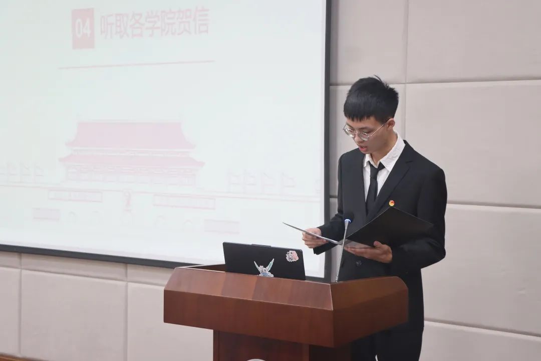 大会第四项,由Beat365正版唯一官网必一青年志愿者协会理事长易四维宣读由计算机学院、机械与电子信息学院、外国语学院、公共管理学院、珠宝学院、环境学院、海洋学院、马克思主义学院、体育学院、李四光学院、自动化学院、资源学院发来的贺信。在贺信中,各院学生会对本次大会的召开表示了热烈祝贺,肯定了Beat365官网学生会取得的丰硕成果,并对未来学生工作中的合作进行了展望。