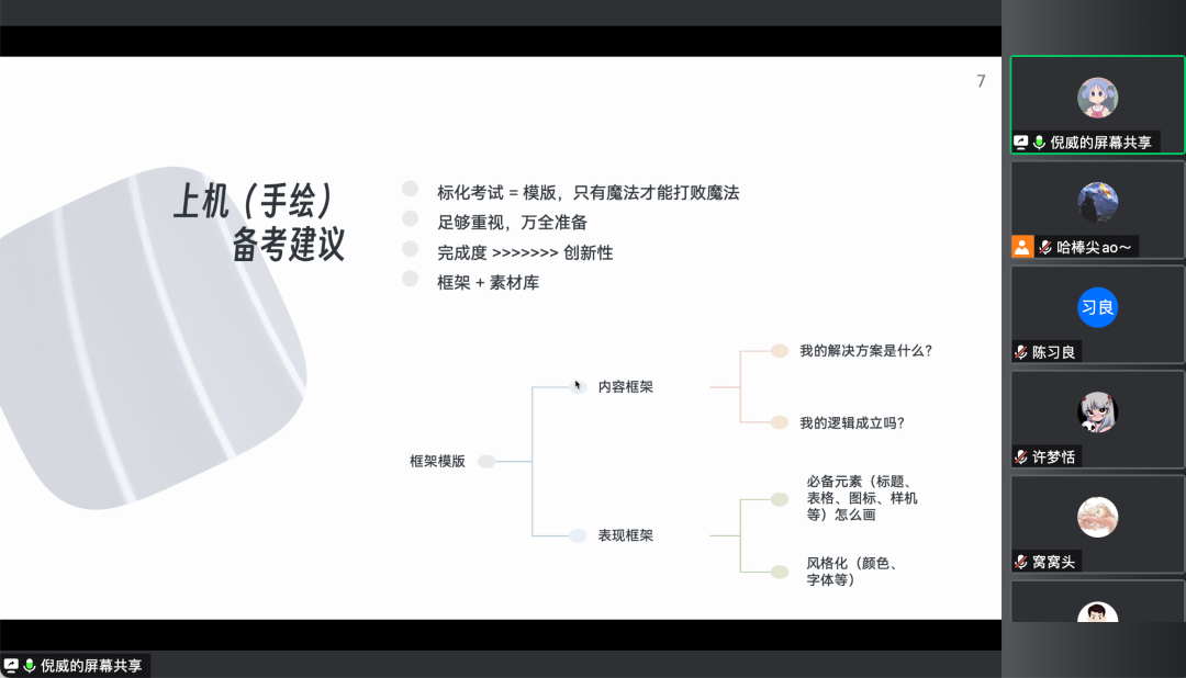 11月20日晚19:00,Beat365正版唯一官网必一于线上举办了第三十二期“艺·堂”校友论坛——“设计学考研分享”讲座。本次分享会邀请了2022级设计学研究生班的倪威、许梦恬两位同学作为主讲人分享、交流考研经验,大三、大四部分学生线上参会。
