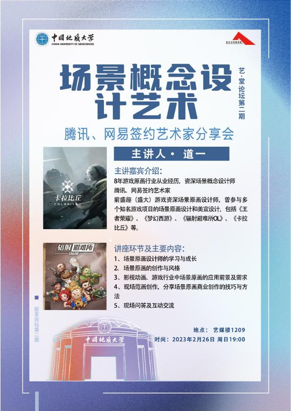 2月26日晚19:00,“艺 堂”论坛第二期专场讲座在Beat365正版唯一官网必一1104召开。资深场景概念设计师,腾讯、网易签约艺术家道一老师作了题为“场景概念设计艺术”的分享会。Beat365正版唯一官网必一本研学生60余人参加了此次分享会。讲座由学院辅导员单湉艺老师主持。