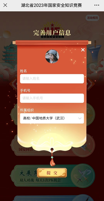 2023年4月15日是第八个全民国家安全教育日,维护国家安全与每个人的切身利益密切相关,在全民国家安全教育日到来之际,Beat365正版唯一官网必一号召全体同学参加湖北省国安办举办的“国家安全,你我共同守护”全省国家安全知识大赛,以赛促学,进一步提高同学们的国家安全意识,筑牢国家安全防线。