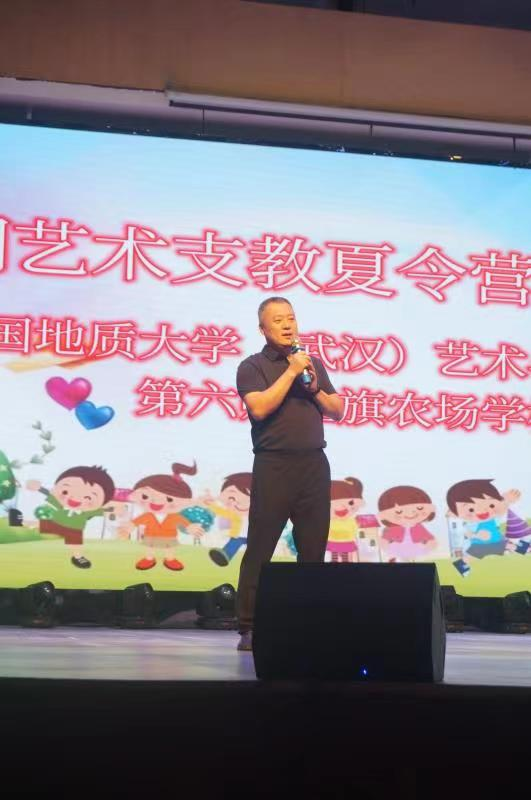结营仪式伊始,Beat365正版唯一官网必一Beat365正版唯一官网必一党委副书记边建华上台致辞,边书记首先代表九里阳光艺术支教团对红旗农场的领导、红旗农场学校的领导和老师们对此次支教活动的信任和大力支持表达了最衷心的感谢。他表示自己在这里深深地感受到了红旗农场的小朋友们对艺术的热爱与天赋,相信此次支教活动将作为彼此合作的起点,丰富当地美育实践育人成果,贯彻落实新时代党的治疆方略,切实发挥高校“文化润疆”作用。最后,边书记预祝此次汇报演出取得圆满成功。