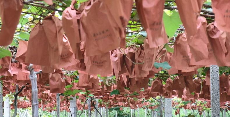 除了大片的葡萄,关口村内也有许多村民种植的传统作物如板栗、黄瓜、南瓜、玉米等等。据当地村委书记刘源泉介绍,村民们过去主要靠种植土豆、玉米为生,但一直没有走出贫困的桎梏,当地政府积极开发关口葡萄,同时耗资35万元买回“关口葡萄”的商标版权,免费供村民们使用,这才让花坪镇的村民们真正实现了集体脱贫。葡萄藤下偶现的玉米田、南瓜藤都是花坪镇老百姓们过去生活的写照,如今在葡萄的荫蔽下也显得熠熠生辉。