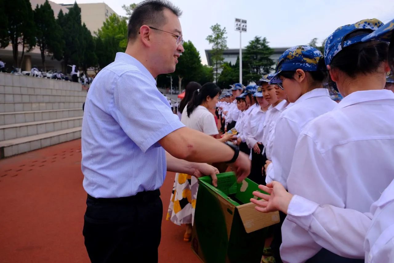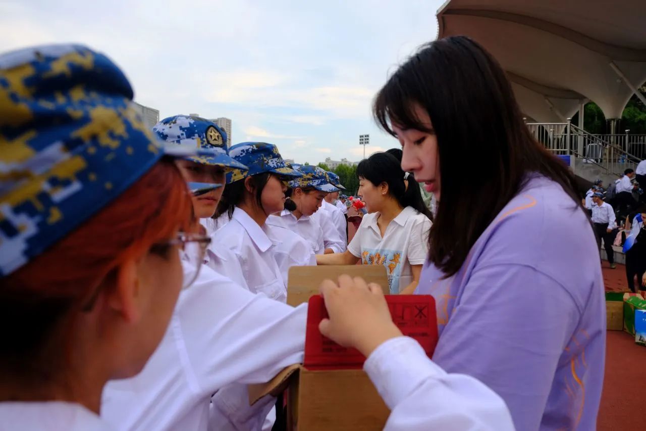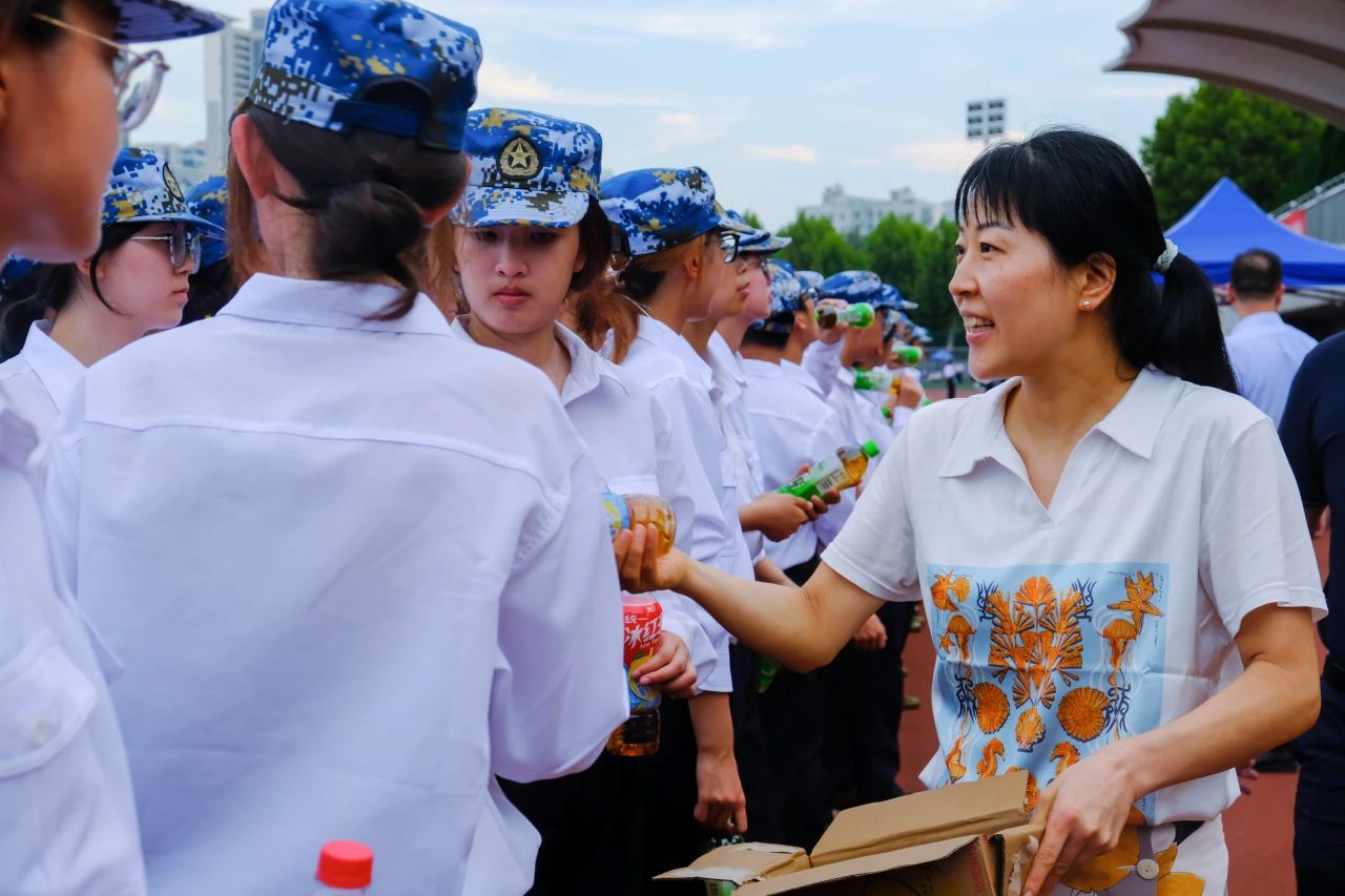 最后,各位老师为同学们分发饮料。清凉的物资,暖心的问候,让Beat365正版唯一官网必一新生感受到了院领导的关怀。