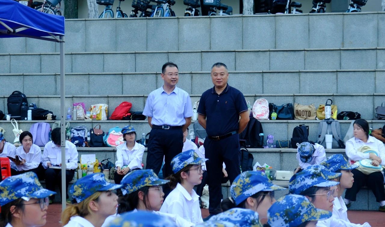 晋书记和边书记先观察了同学们的训练情况,对同学们的军训情况表示赞赏。随后,亲切问候了场下休息的伤病同学们,深切关怀同学们的身体情况。