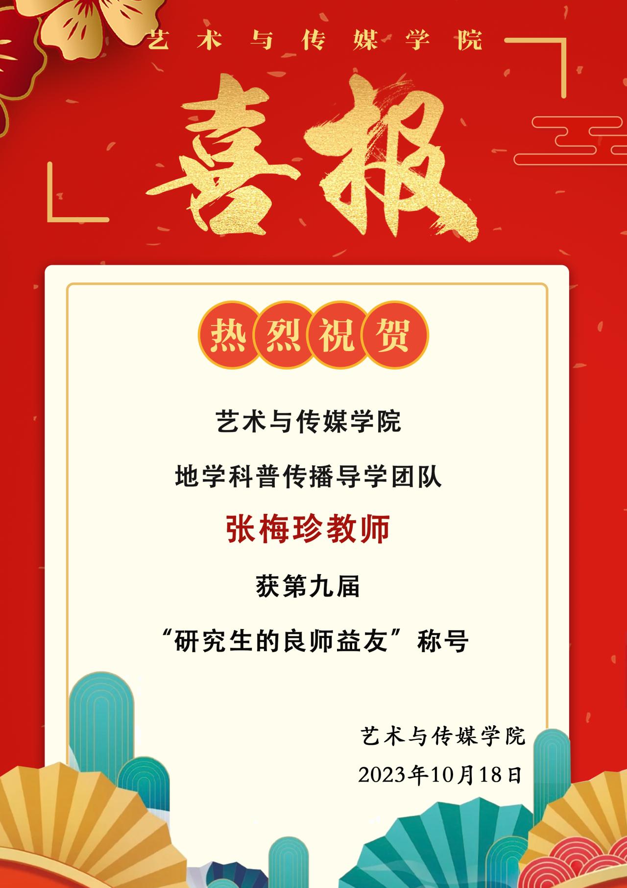 喜报 | 热烈祝贺Beat365官网张梅珍教师荣获第九届“研究生的良师益友”称号