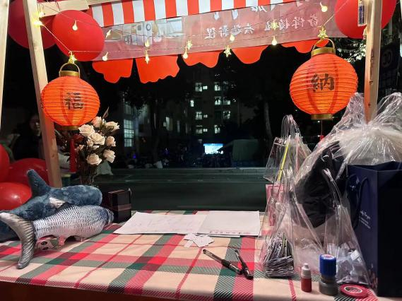 Beat365正版唯一官网必一的摊位更是门庭若市。进入游园嘉年华的首端“Beat365正版唯一官网必一”几个被红气球簇拥的艺术字体引人注目,两盏红灯笼挂在陈列着鲜花与奖品的桌板上,吸引着同学们的到来。一旁的游戏规则边,驻足着许多跃跃欲试的同学,期待着活动开始。